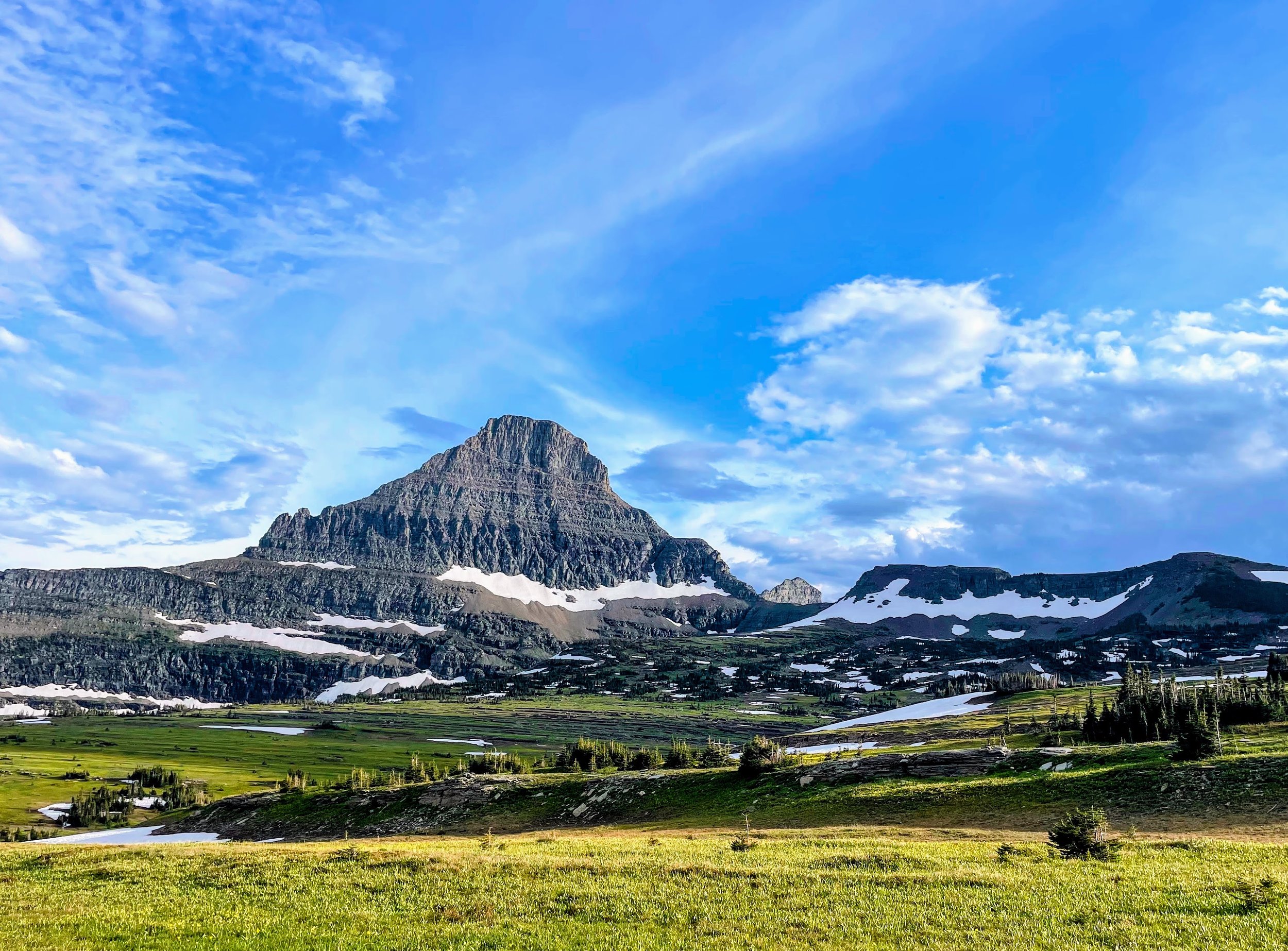 After a night at the Bozeman Inn and some decent food downtown, we were off and rolling again towards Glacier National Park. The drive was beyond mesmerizing in it’s other-worldly atmosphere. Solitary mountains standing alone in the distance were often flanked by beautiful meadows in full June bloom. The blue and grey hues of the slopes wonderfully contrasted the snow-white peaks, still chilled in the high altitude and late-spring air. A bright yellow sea of flowers spanned out across the landscape, dotted by deep purple bulbs and loud pink petals. Warm in the sun with a comfortable high of 65 for the day, we barreled down the road with the windows rolled down and a subtle speed of 90 MPH. My girl never knew my tendency to always the push the speed limit, with Montana being one of the tougher states to do this, given that number was often 85. The rest of our ride took us around Lake Paulson and up past Kalispell, both as breathtaking and beautiful as Jackson, Wyoming. The next stop was Glacier.