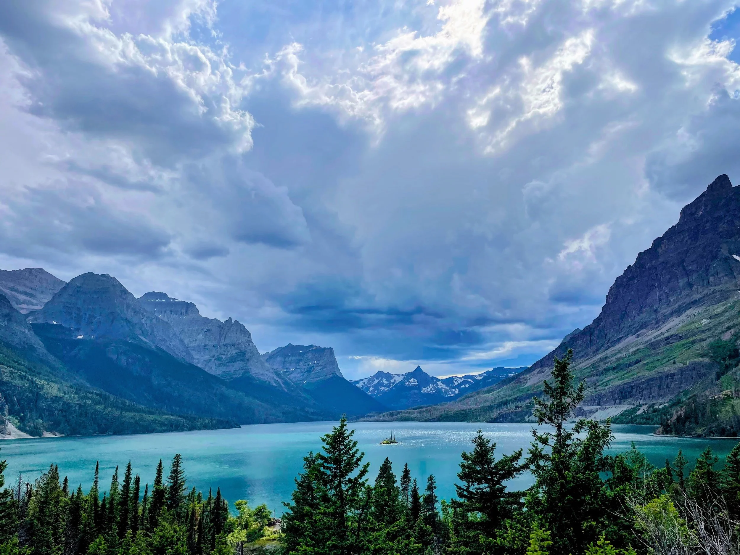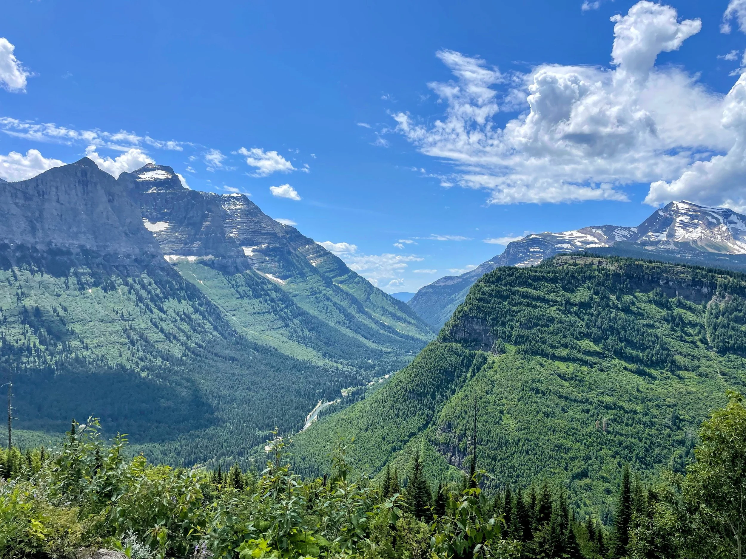 Located roughly 40 minutes from Logan’s Pass, Saint Mary Falls is an excellent trail for taking in the beauty of the Glacier National Park off the road. The 2 mile roundtrip route takes you through gentle steams and even gentler woods. The snow-packed peaks, unobscured in the gorgeous June weather, towered high into the big skies of northern Montana. The trail does not change in elevation too drastically, and leads to the titular waterfalls which raged with the late spring snowmelt in full deluge. Extra socks are not necessary, but can make for a comfortable walk back in case your feet are submerged in shallow rivers beds or, as was the case with us, scampering around smaller falls. Well worth the cold feet.