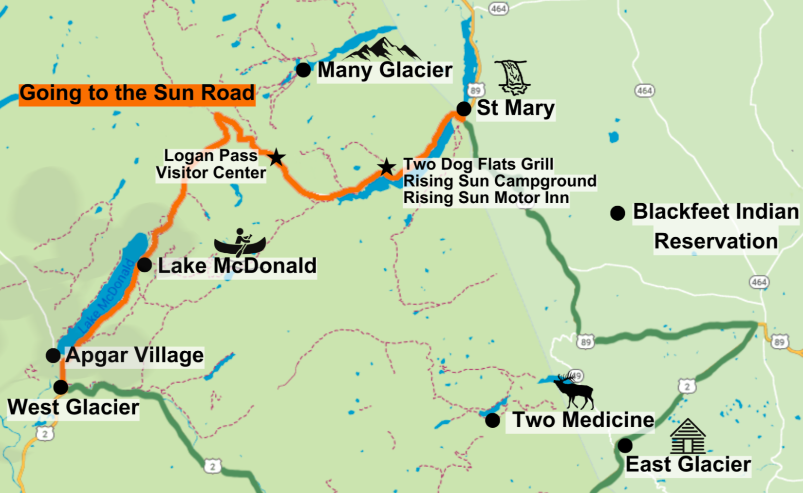 On the flip-side, one knows they will have a second chance to see every attraction they pass on their way back. It was nice knowing we would have another opportunity to stop at any sights that were too crowded on the first leg. With that being said, any desire to explore beyond St. Mary (see map) will require an early morning departure, with time allotted for an entire day. Of course, the option of heading up into Alberta and spending the night there is a viable one, and our spontaneity served us well in deciding to take that route. More on Canada in a later article, though we will include our beautiful wanderings in Waterton National Park, just over the border from, but still connected to, Glacier National Park. By going this route, and starting early in Alberta and working our way back South, we had the whole day to lesiurely drive the one way back to the South Gate.