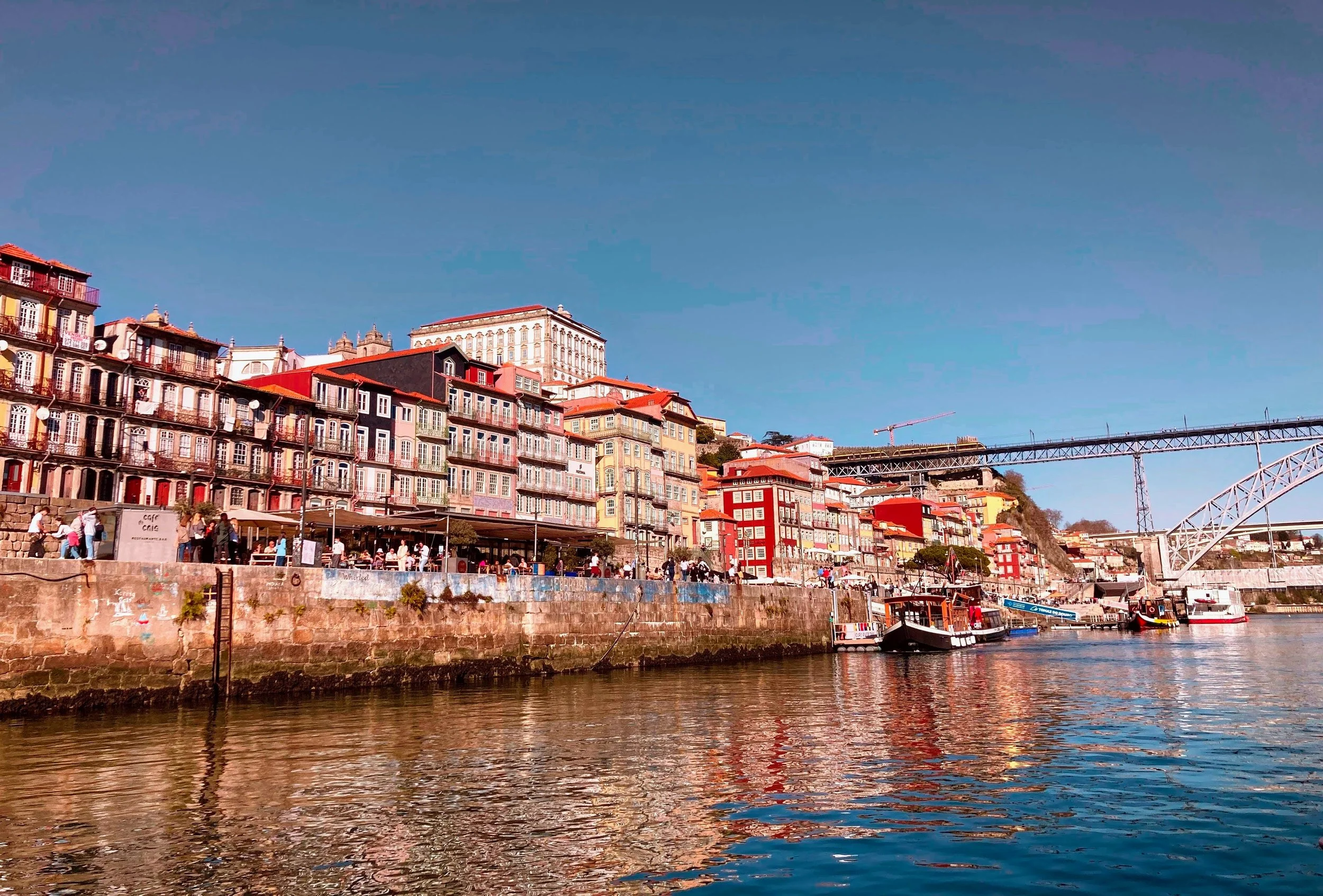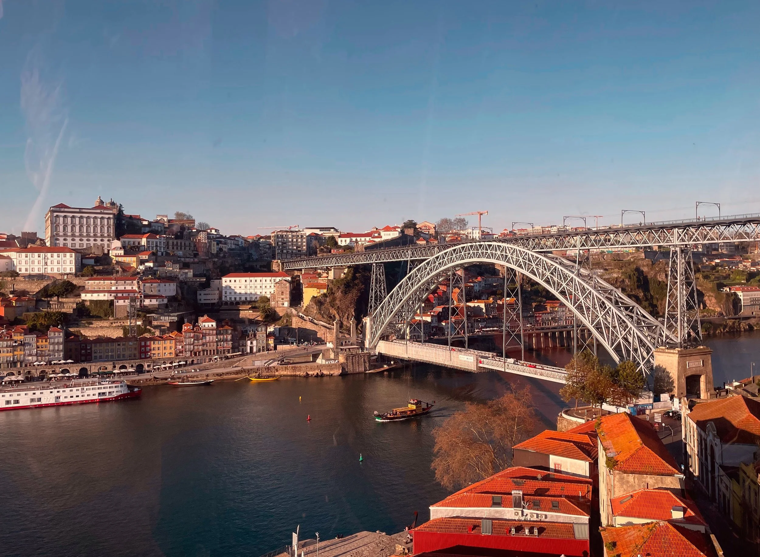 Though many European cities often offer countless museums and sites that tourists flock to, one of the most appealing aspects of Porto was the pure splendor felt in just walking around town. The situating of the city on the two banks of the Douro River gives you fantastic viewpoints from most places in the main tourist areas of town. One can easily walk the length of Ribeira along the water, across the Ponte Luis, and back down Vila Nova de Gaia in the span of an hour. Numerous cafes and restaurants line each of the banks of the river, allowing for spectacular water views while sipping on an espresso or Aperol Spritz. If scared of heights and/or bridges, a wide-windowed trolley car, part of the city’s public transit system, runs the span of the bridge, and allows one to soak in the beautiful vista of Porto from the comfort and safety of a cushioned train seat. Though we did not ride, I imagine the cost of a metro ticket is rather cheap, as is the case in most of Europe.